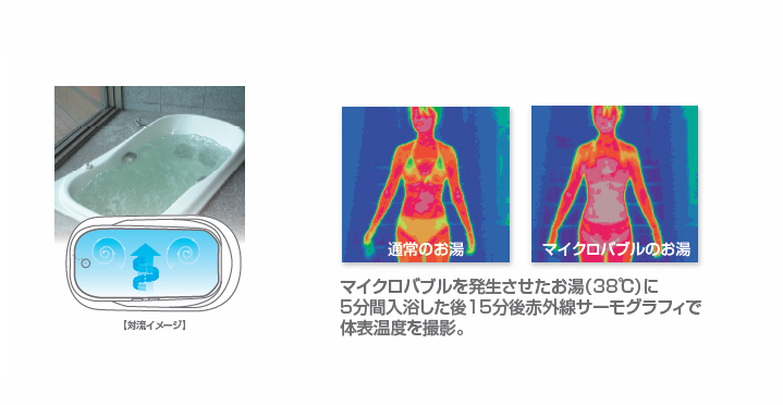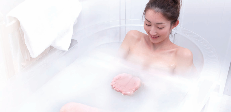 石けんやタオルでこすらなくても、入浴するだけでマイクロバブルが