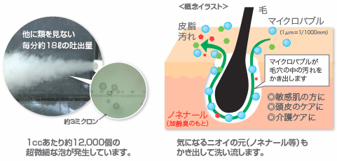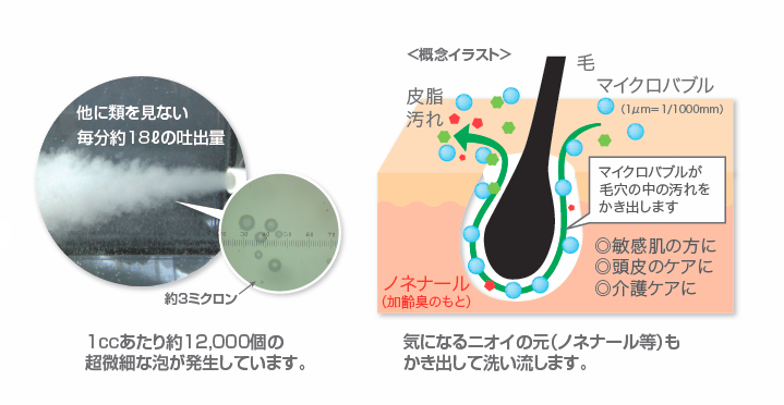 マイクロバブルとは、直径わずか1/1000mmの泡のことで、